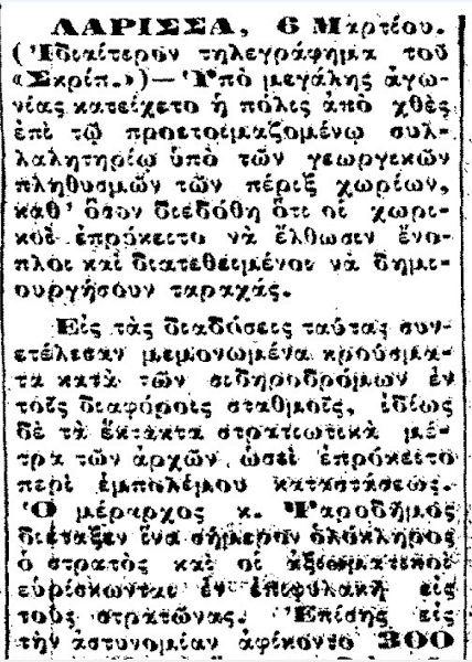 Το συλλαλητήριο στη Λάρισα προγραμματίστηκε να γίνει στις 6 Μαρτίου 1910.
