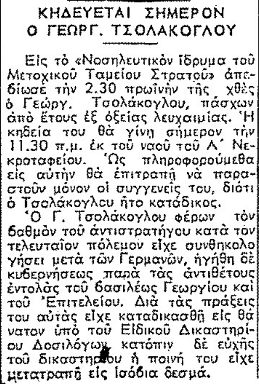 23/05/1948. Η Κηδεία του στρατηγού Γεωργίου Τσολάκογλου. Έμεινε στην Φυλακή 43 μήνες. Και απέδρασε!!!!