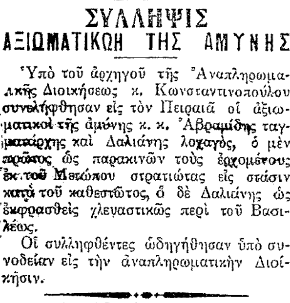 Τα Ατμόπλοια έφερναν στρατιώτες των μετόπισθεν και όχι του Μετώπου. Που τους αφόπλιζαν και τους έδιναν προσωρινά απολυτηρια . Συνελήφθησαν ο Γεώργιος Παπανδρέου και ο Σπύρος Μελάς. Ορκίστηκε η κυβέρνηση των Μασόνων και Ιουδαίων υπό τον Τριανταφυλάκο που κάλυψε το πραξικόπημα του Κωνσταντίνου που εξέδωσε το διάγγελμα πρός τον Λαό χωρίς την υπογραφή κανενός υπουργού..png)